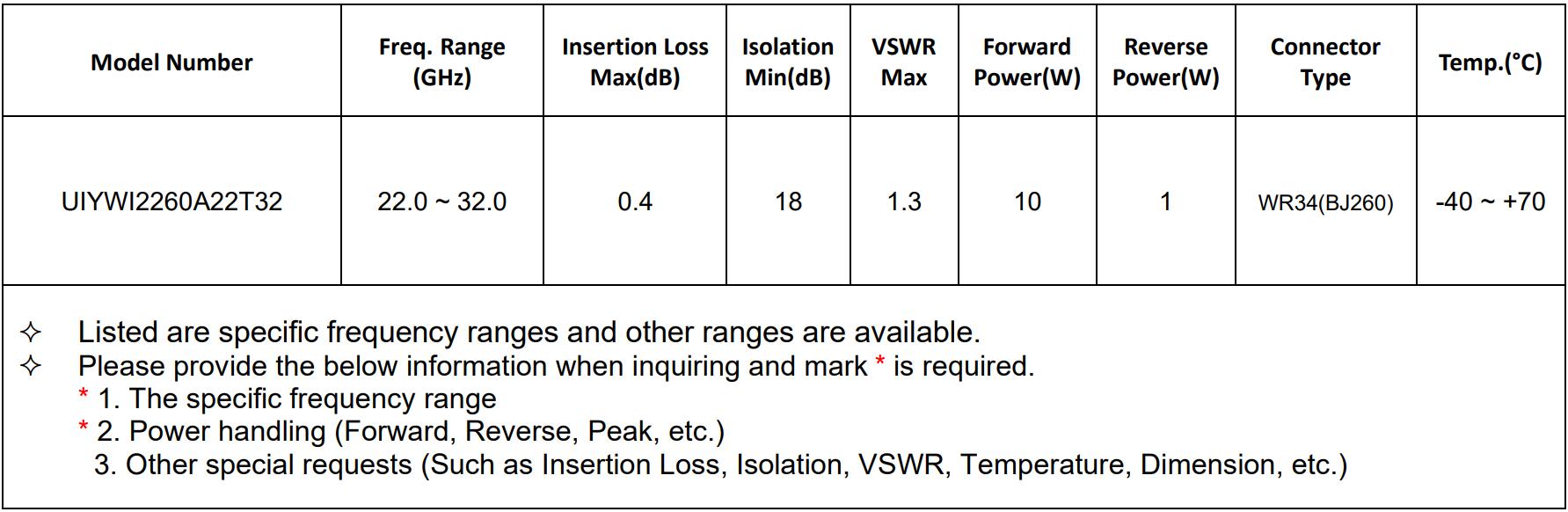 Freq.Range: 22.0~32.0GHz |