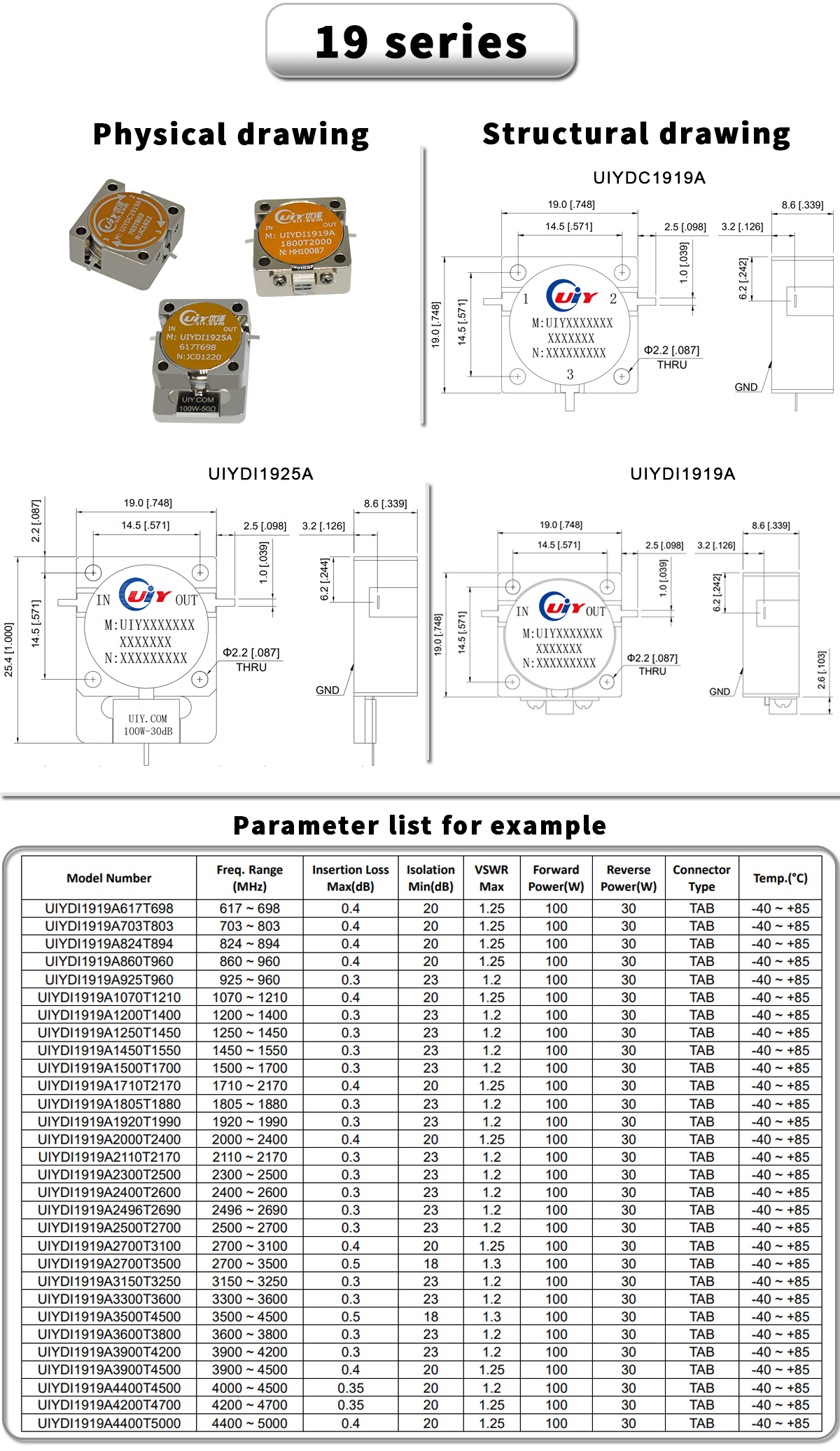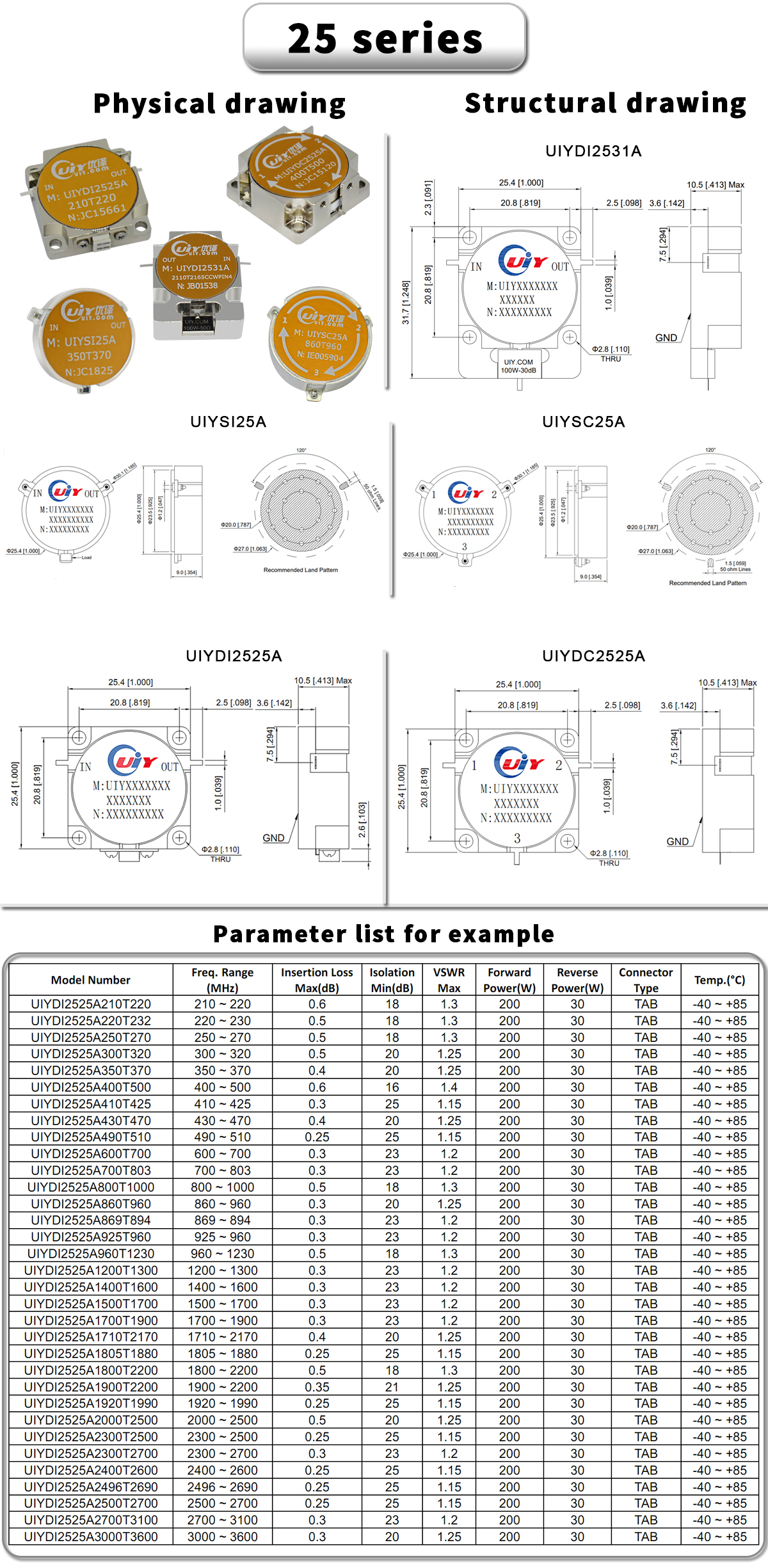 As we know, product miniaturization and integration are the general trend of technological development in the world now.As a supplier of microwave devices, UIY has been constantly innovating and improving in this field. Nowadays, our products frequency can cover 10MHz to110GHz. With the launched of 5G small isolators / circulators, we have also taken many steps to improve other products.