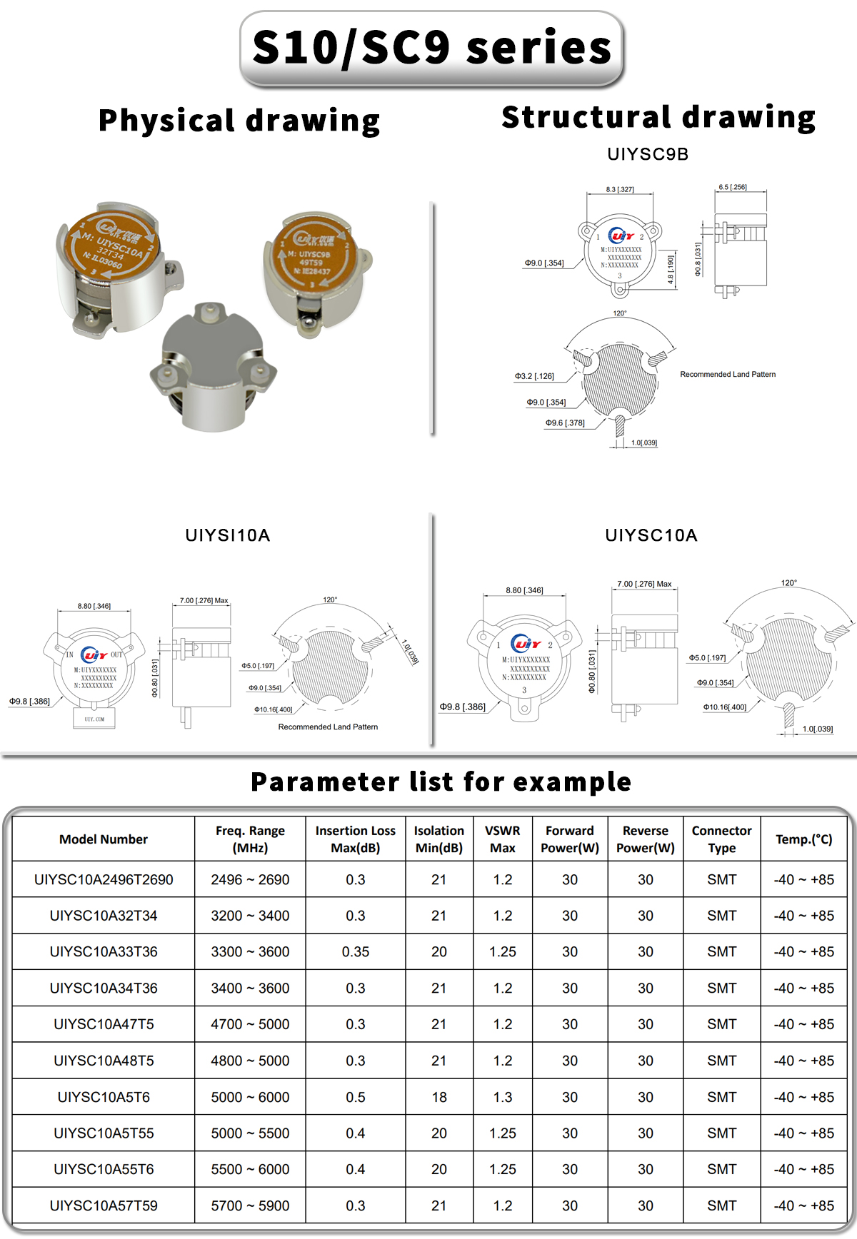 5G frequency band SMT isolator / circulator—SC10/SC9: