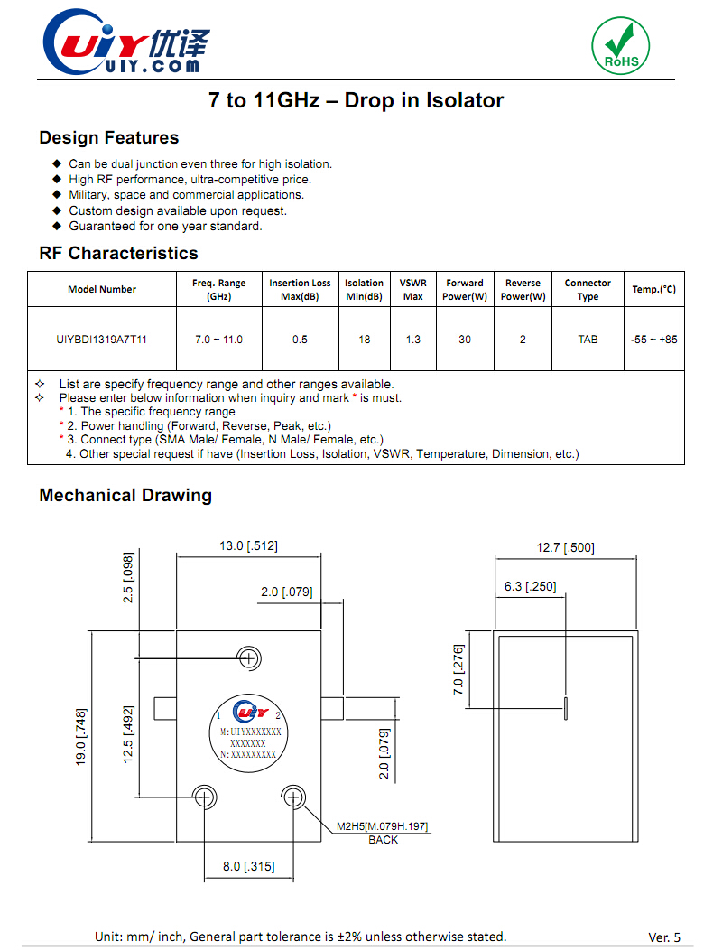 If you have any parameter questions about frequency, power, insertion loss etc, pls feel free to contact us directly.