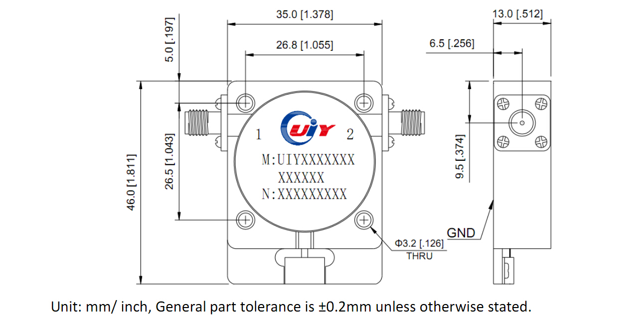 | UIYCI3546A600T800SF | 600-800 | 0.5 | 18 | 1.3 | 100 | 100 | SMA-F | |