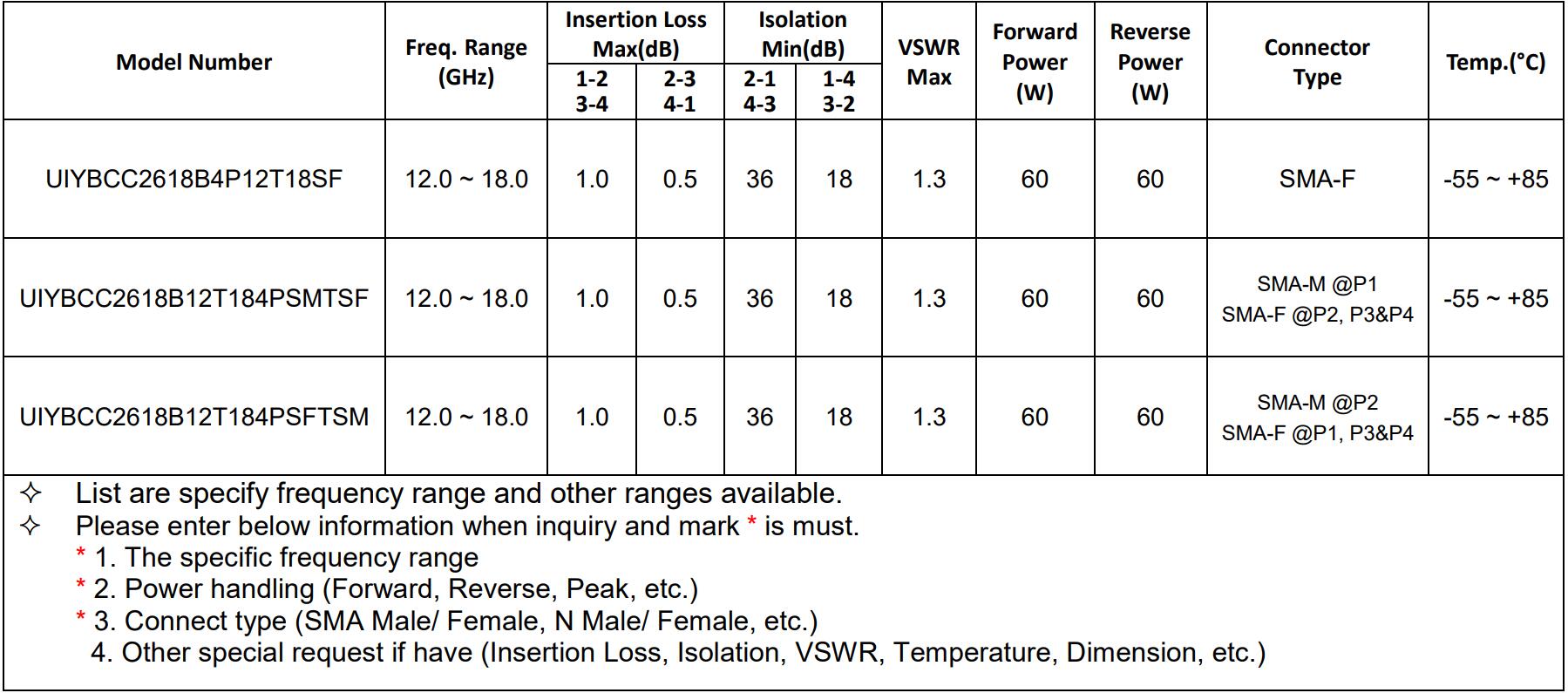 Freq.Range: 26-40GHz