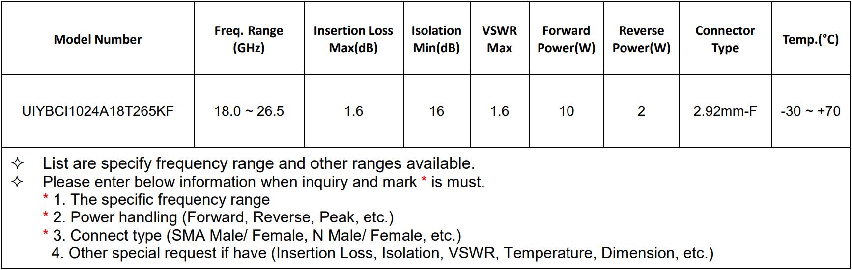 Freq.Range: 18.0-26.5GHz