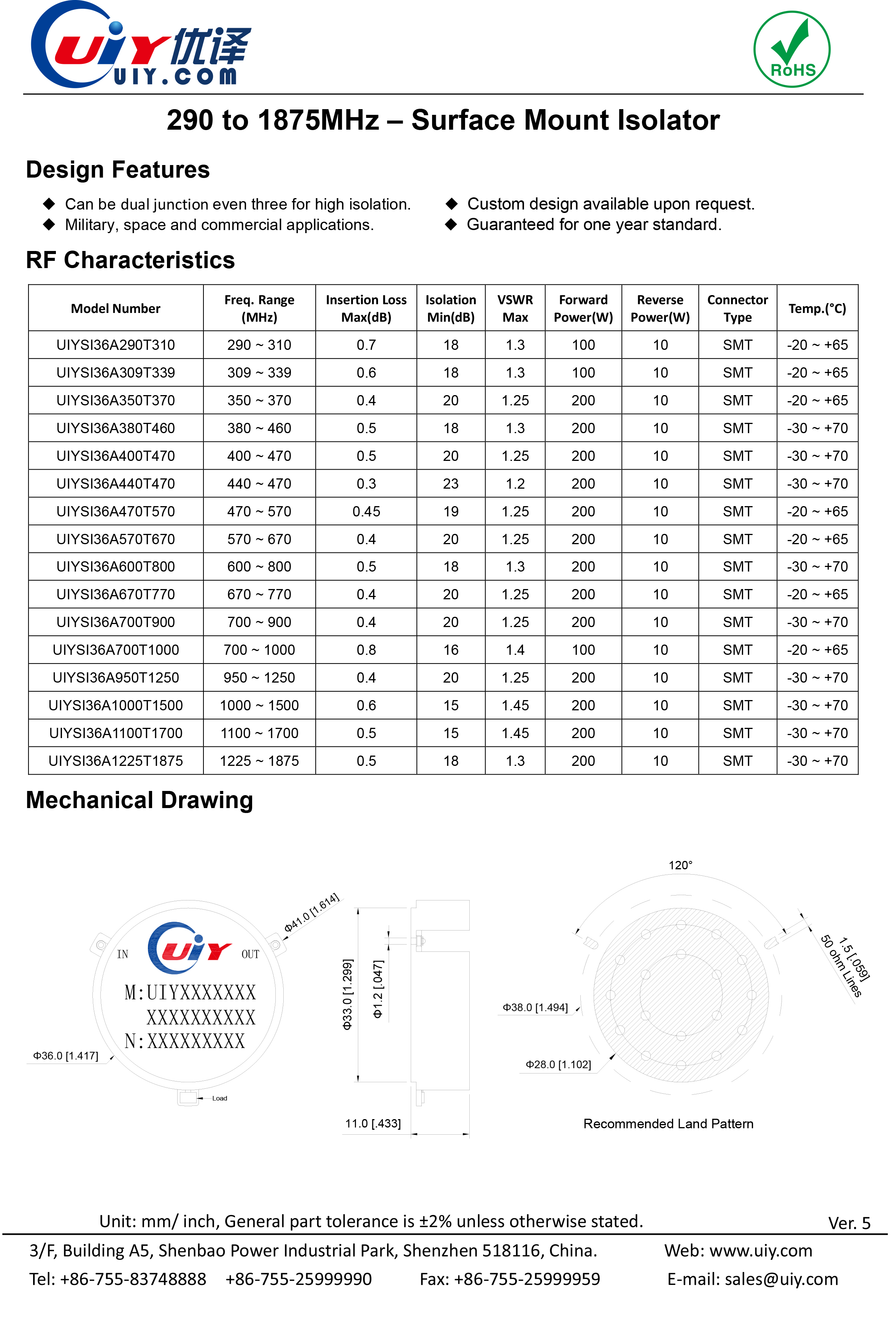 If you have any parameter questions about frequency, power, insertion loss etc, pls feel free to contact us directly.
