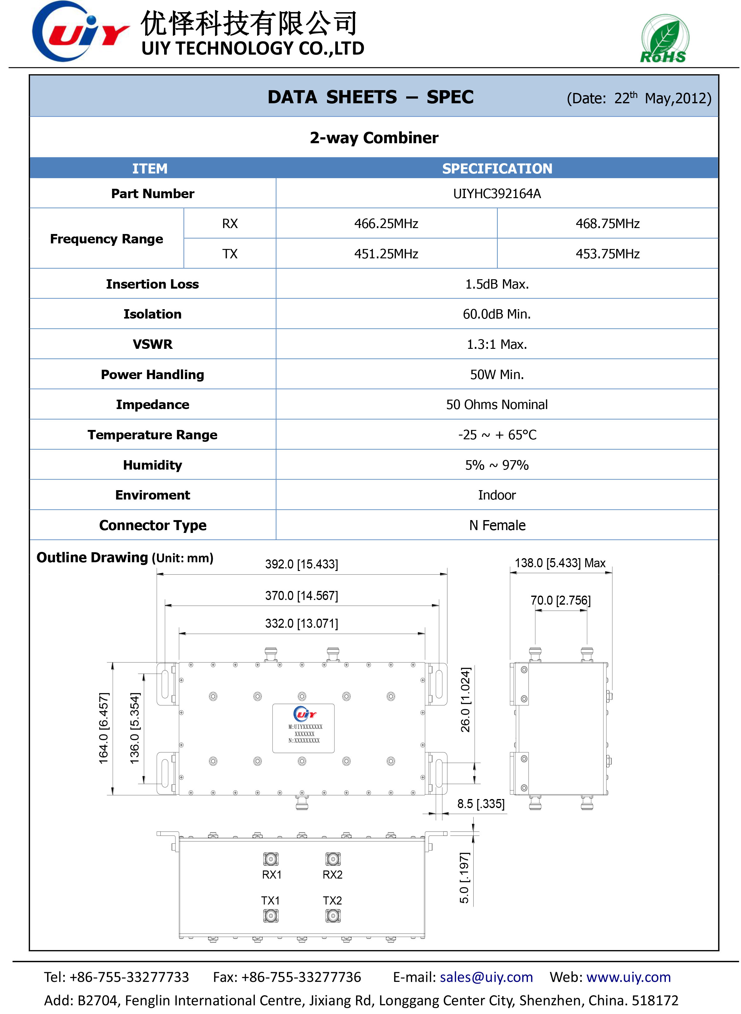 For the variety of product, we haven’t list enough for choosing. If you have any question about frequency, index parameter, power,connector type, etc, please call us or send us an email.