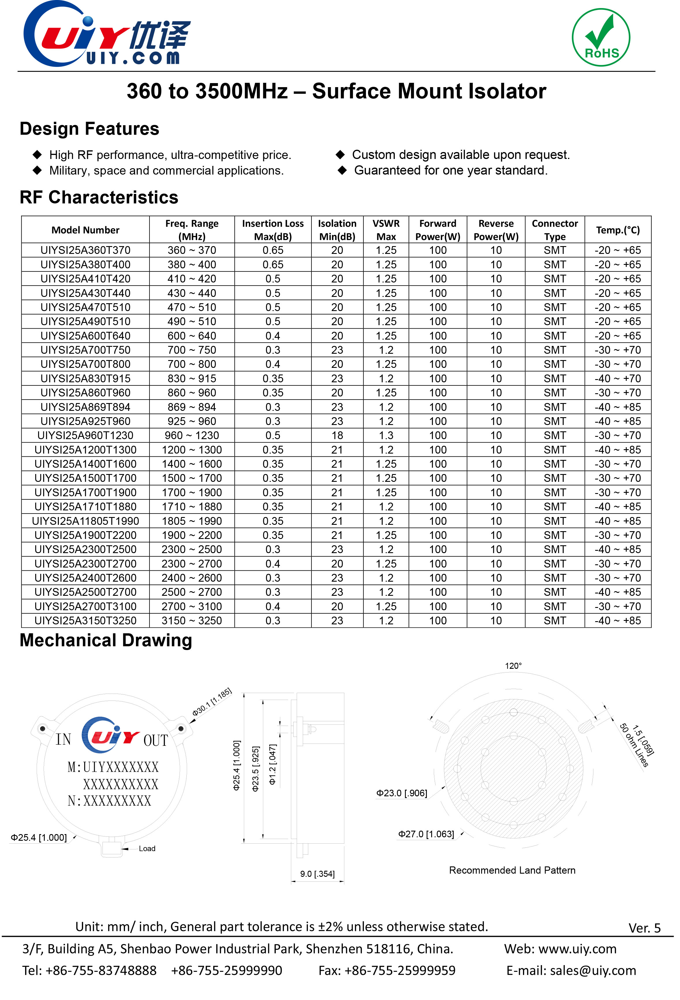 Page down:Coaxial Isolator, UIYCI2528A2000T27...