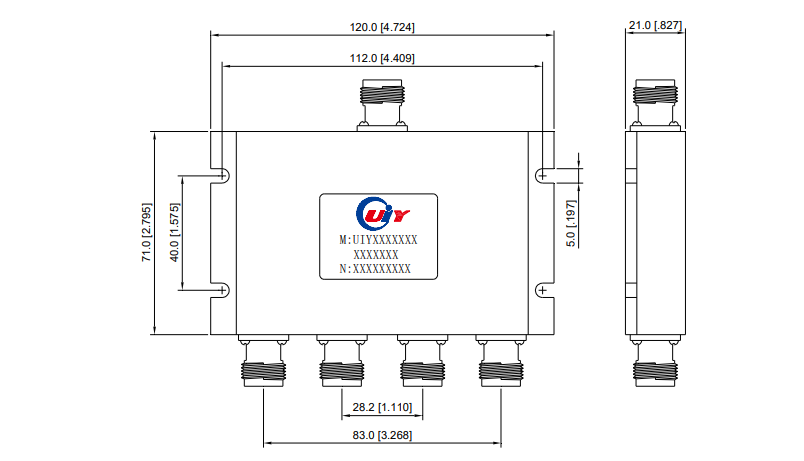 | UIYTX7667A1750T5900SF | CH1 | 1750 ~ 1950 | 0.5 | 30 | 1.22 | 100 | SMA-F | -30 ~ +70 |