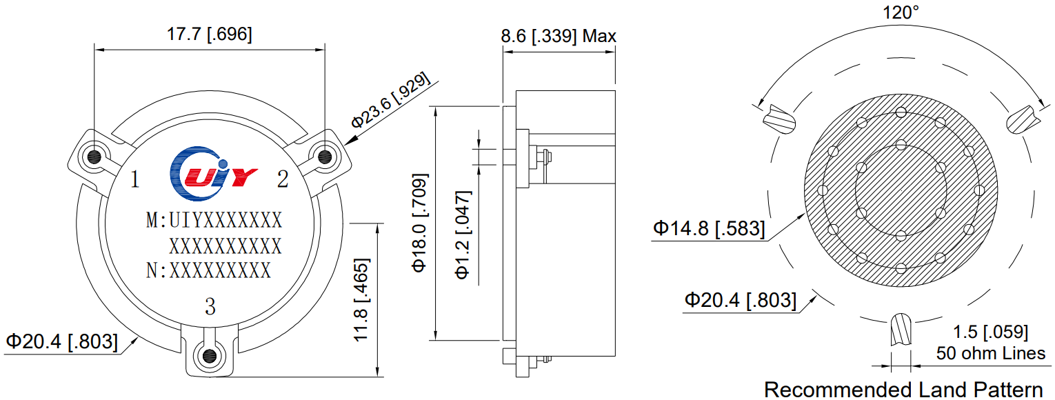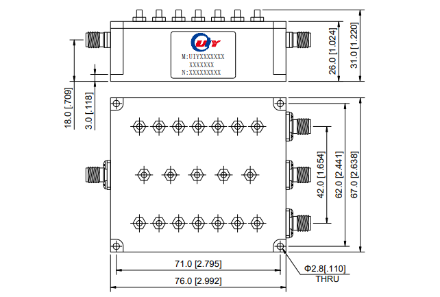| UIYMC55B22T26 | 22 ~ 26 | 0.7 | 16 | 1.35 | 10 | 10 | Microstrip | -55 ~ +85 |