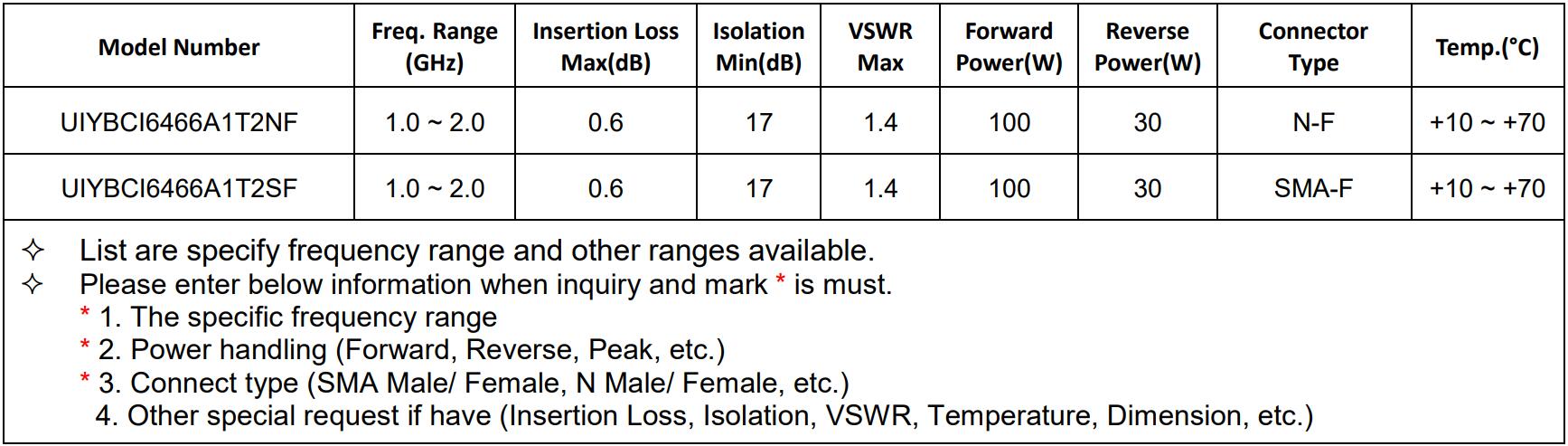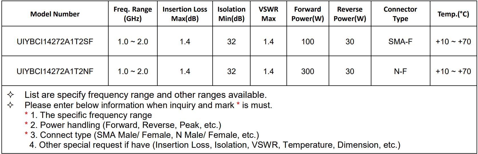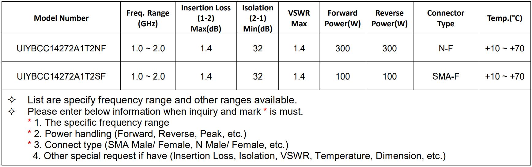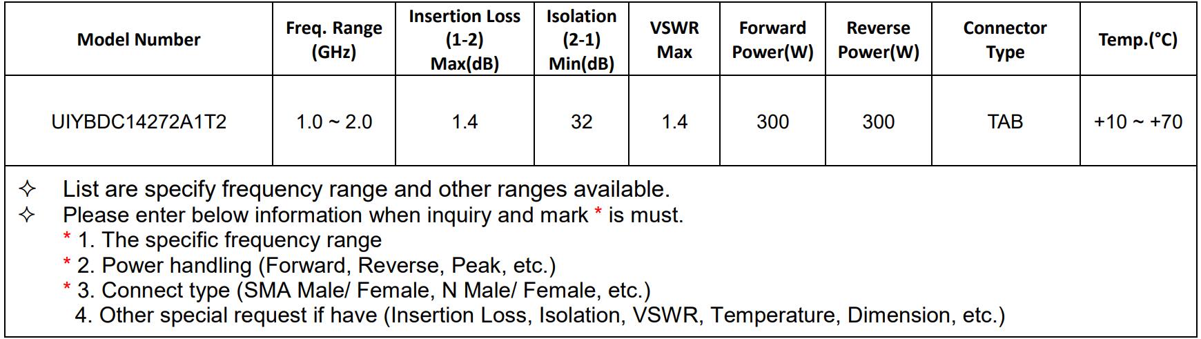 L-band (1-2GHz) Isolators/Circulators recommended