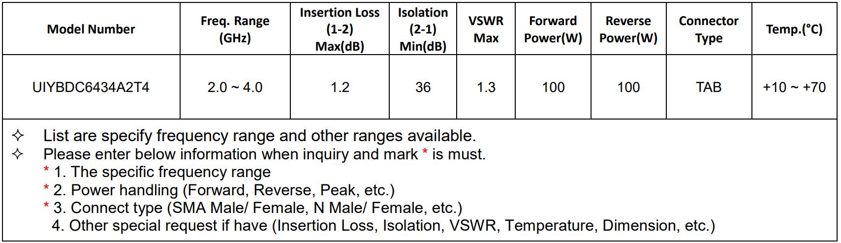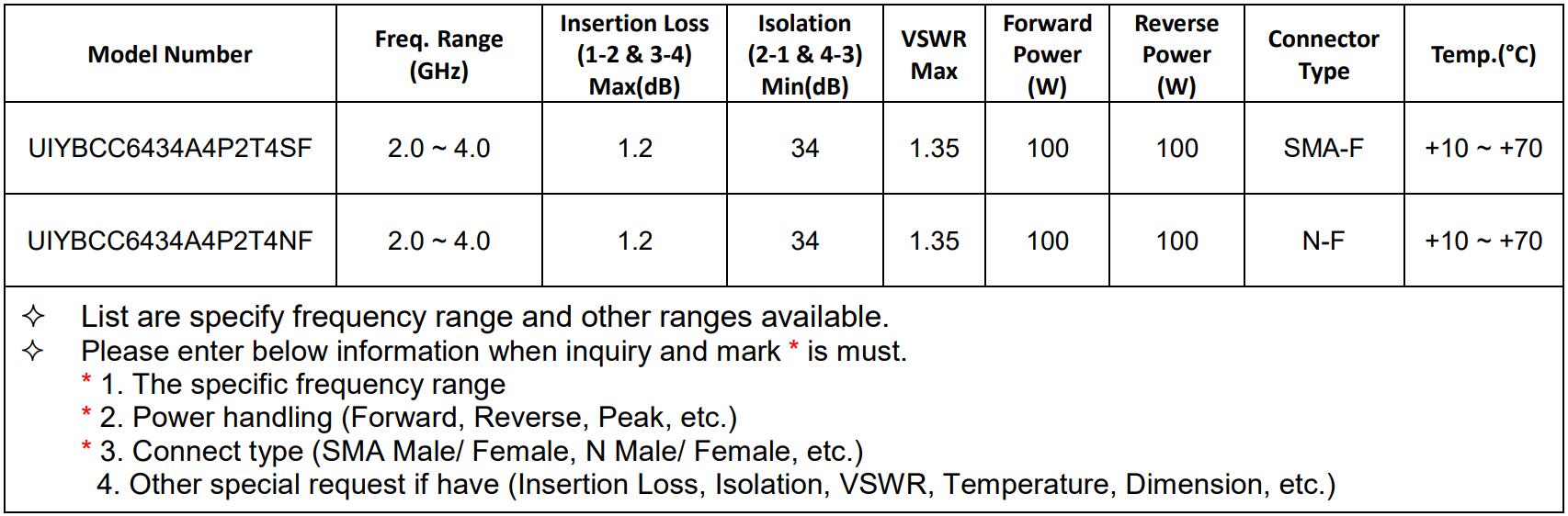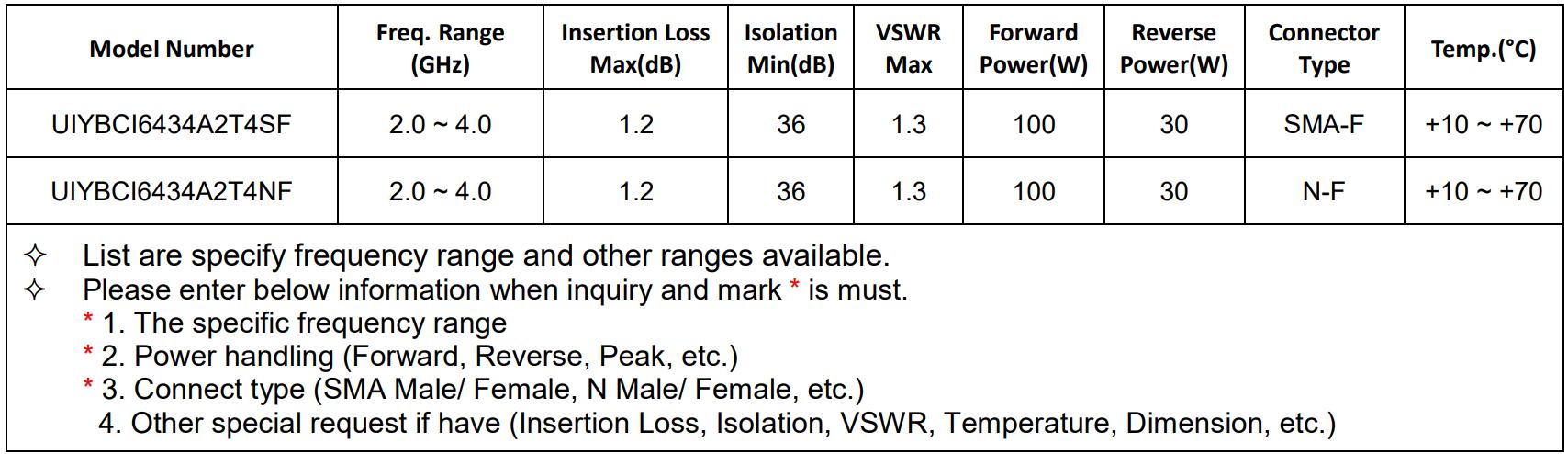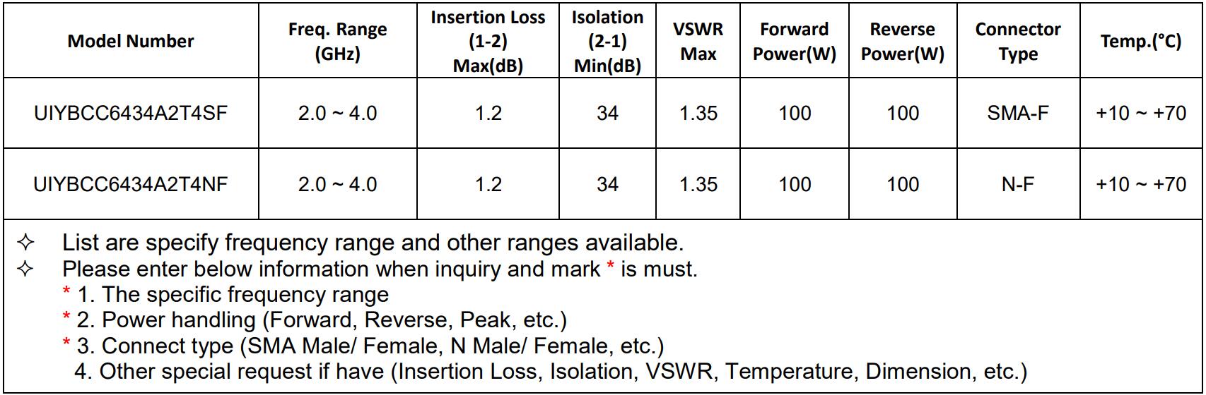 S-band (2-4GHz) Isolators/Circulators recommended