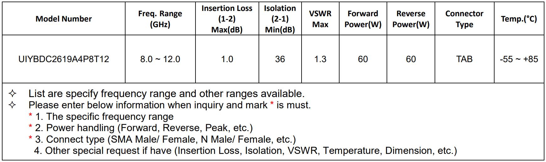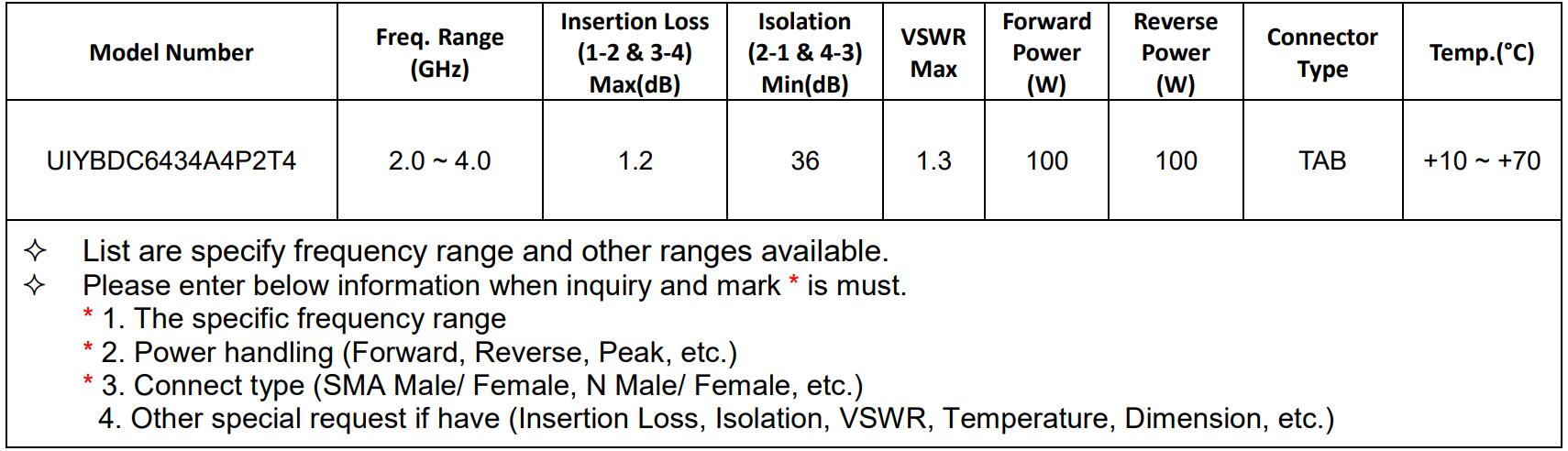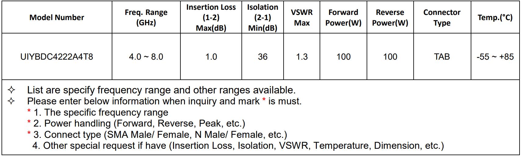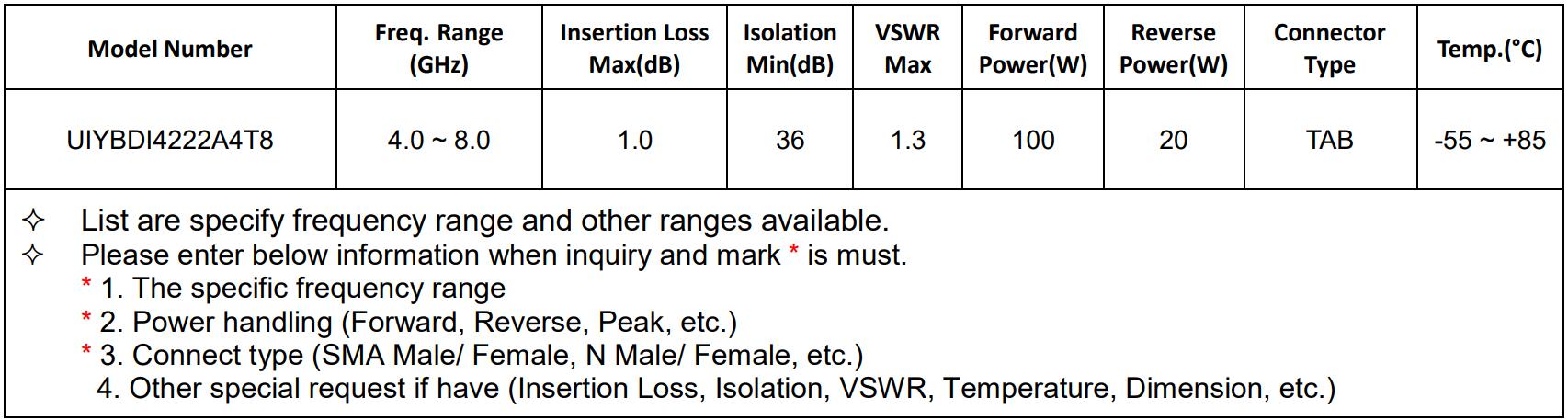C-band (4-8GHz) Isolators/Circulators recommended
