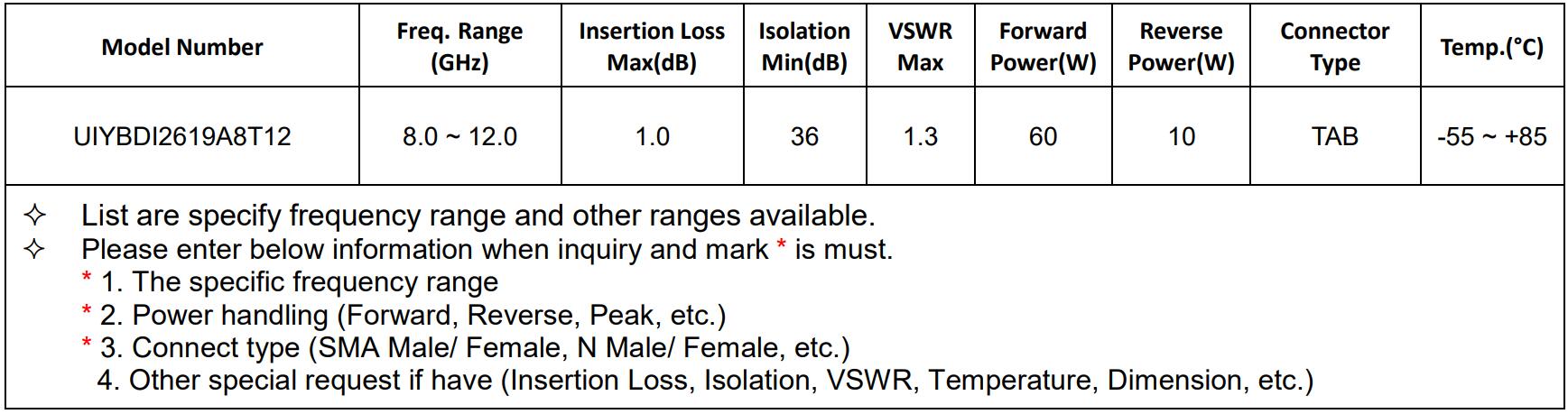 X-band (1-2GHz) Isolators/Circulators recommended