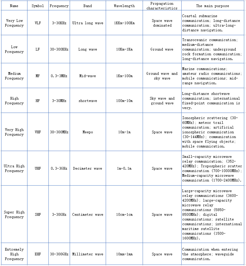 China’s current microwave sub-band code