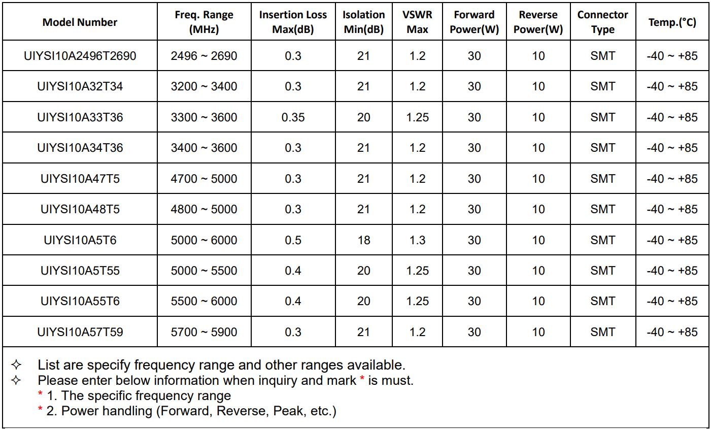 RF Isolators UIYSI10A