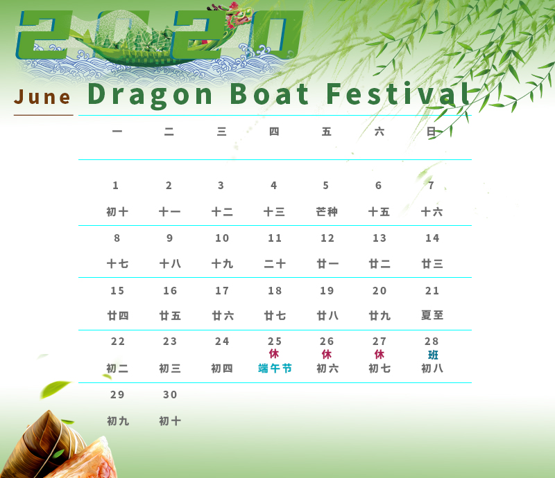 Dragon Boat Festival is coming, According to the holiday notice of Dragon Boat Festival of the State Council and the actual situation of our company, the arrangements are as follows: