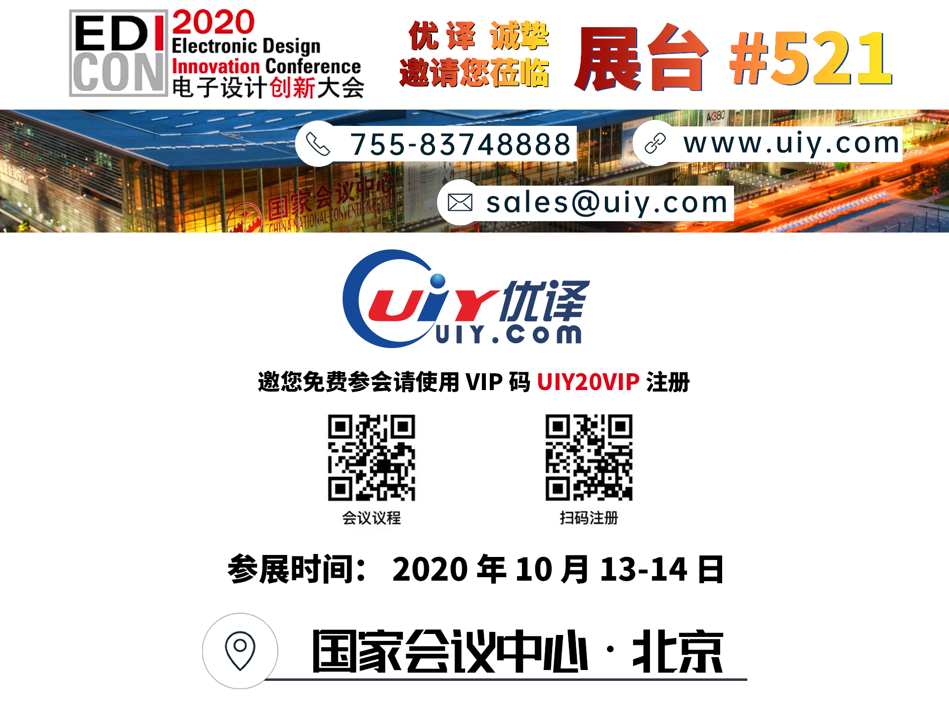 We hereby sincerely invite you and your company representatives to visit our booth at the China National Convention Center from October 13-14, 2020. You are invited to register with the VIP code UIY20VIP and participate in the exhibition for free. At that time, experienced technicist will be in the booth to demonstrate and explain for you. Our exhibitors will sincerely listen to your valuable opinions, and discuss about the industrial leading technology as well as market opportunities to promote business together.