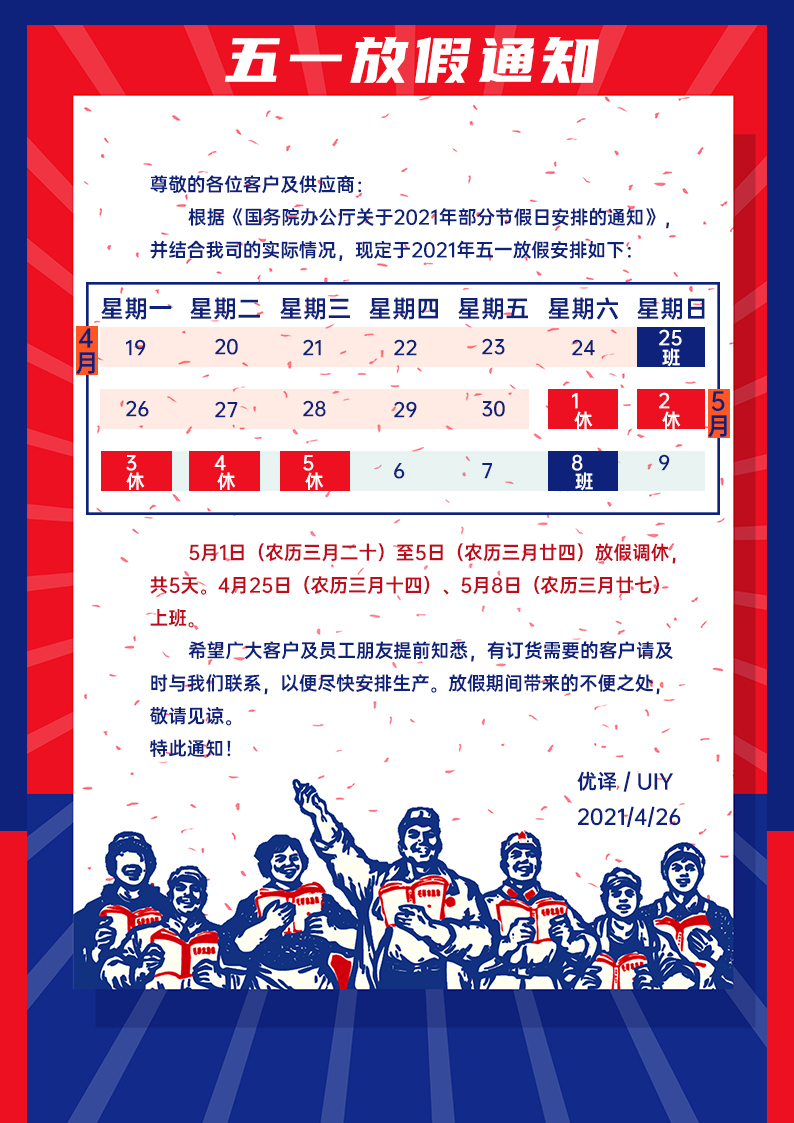 优译2021年五一劳动节放假通知