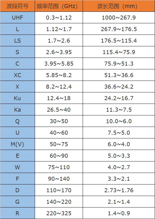 弹载雷达,工作频段(X、Ku、K、Ka、V、U、W)。